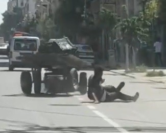 Şanlıurfa’da dizginleri düşen ve kontrolden çıkan atı durdurmak isteyen sürüsü düşerek at arabasının altında ezildi. Yüreklerin ağızlara geldiği olayda at ve sürücü yara almazken o anlar bir vatandaş tarafından cep telefonuyla kaydedildi.