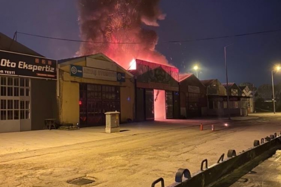 Oto sanayide alevler geceyi aydınlattı