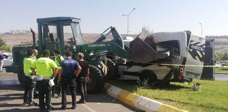 Şanlıurfa’da freni boşalan kepçe, ilkokul öğrencilerini taşıyan servis minibüsüne çarptı. Kazada 11 öğrenci ile 2 sürücü yaralandı. Hastaneye kaldırılan çocuklardan 2’sinin durumunun ağır olduğu öğrenildi.