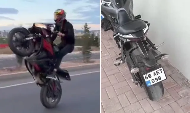 Olay, Şanlıurfa’da yaşandı. Motosikletinin plakasındaki harf ve rakamları siyah bantla değiştiren M.B.Ç. isimli şahıs, kendi ve diğer sürücülerin hayatını tehlikeye atacak derecede akrobasi hareketleri yaptı. Bunun şehrin değişik bölgelerindeki trafiğe açık yollarda yapan sürücünün bu kurnazlığı poliste işe yaramadı. Sosyal medyada paylaşılan görüntüleri inceleyen polis ekipleri, gerçek plakanın 63 AFT 098 olduğunu tespit etti.
