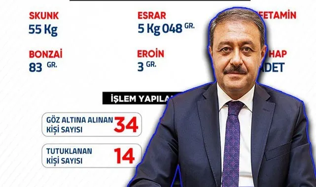 Yapılan denetimler kapsamında uyuşturucu madde ile bağlantısı olduğu tespit edilen 34 şüpheli şahıs yakalanarak gözaltına alınırken 14 kişi ise yakalanarak cezaevine teslim edildi.