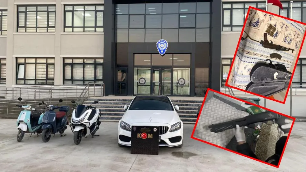 Adreslerde yapılan aramalarda 9 tabanca, 4 av tüfeği, 1 otomatik piyade tüfeği, bir miktar uyuşturucu madde ile POS cihazı ele geçirildi.